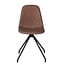 Der Stuhl besitzt eine leicht gerundete Rückenlehne und Sitzfläche aus gepolstertem, braunem Kunstleder (PU).