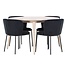 Die Esszimmerstühle Edina sind mit hochwertigem schwarzem Samt bezogen, der eine weiche, luxuriöse Textur bietet und dem Essbereich Eleganz und Glamour verleiht. Die ergonomische Sitzfläche, die unterstützende Rückenlehne und die robuste Konstruktion machen die Stühle ideal für lange Mahlzeiten und gesellige Abende. Die schwarzen, pulverbeschichteten Stahlbeine ergänzen das luxuriöse Design und sorgen für Stabilität.