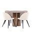 Stilvolles 5-teiliges Esszimmer-Set mit rundem Olivia-Tisch in Mokka und vier beigen Velvet-Samtstühlen – modern, komfortabel und elegant. Lesen Sie mehr.