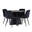 5-tlg. Bootcut Essgruppe mit rundem Tisch ⌀110 cm & 2 Night Stühlen. Schwarz, Samt & Stahl, skandinavisch und komfortabel für moderne Essbereiche. Lesen Sie mehr.