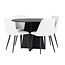 5-teiliges Esszimmer-Set mit rundem Bootcut-Tisch (Ø110 cm) in Schwarz und vier gepolsterten Night-Stühlen in Weiß – modernes Design trifft luxuriösen Komfort. Lesen Sie mehr.