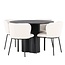 Modernes 5-tlg. Esszimmer-Set mit rundem schwarzem Tisch (Ø 110 cm) und weißen Bouclé-Stühlen – stilvoll, gemütlich und funktional im skandinavischen Design. Lesen Sie mehr.