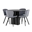 Die grauen Stühle Lilja ergänzen den Tisch perfekt. Ihre geschwungene, ergonomische Form und der angenehm weiche Sitz aus grauem Polyesterstoff bieten hervorragenden Komfort. Die leicht ausgestellten Beine aus mattschwarz pulverbeschichtetem Metall verleihen den Stühlen einen modernen und zugleich harmonischen Ausdruck. Zusammen entsteht eine ausgewogene Kombination aus Form, Funktion und Stil – ideal für alle, die Wert auf Design und Gemütlichkeit legen.