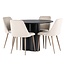 Modernes 5-tlg. Esszimmer-Set mit rundem schwarzen Olivia-Tisch (Ø 110 cm) und braunen Samtstühlen Night – elegant, komfortabel und stilvoll. Lesen Sie mehr.