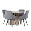 In Kombination mit den stilvollen Rosie-Stühlen entsteht ein harmonisches Gesamtbild. Die grauen Sitzflächen aus weichem Leinenstoff sind vollständig gepolstert und mit integrierten Armlehnen ausgestattet – ideal für langanhaltenden Komfort. Die ausgestellten, schwarzen Metallbeine verleihen dem Design eine elegante Leichtigkeit und unterstreichen den modernen skandinavischen Charakter dieser Essgruppe.