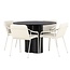 Modernes 5-teiliges Esszimmer-Set mit rundem schwarzem Tisch (Ø 110 cm) und beigen PU-Stühlen. Skandinavisches Design trifft auf luxuriösen Komfort. Lesen Sie mehr.