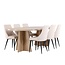 Ergänzt wird der Tisch durch sechs Leone Esszimmerstühle in warmem Beige, die mit ihrem FSC®-zertifizierten Holzrahmen (FSC®C177288) und Bezug aus weichem Polyester-Cord ein Gefühl von Luxus und Nachhaltigkeit vereinen. Die feine Cord-Struktur sorgt für einen modernen, wohnlichen Look, während die schlanken, mattschwarz pulverbeschichteten Stahlbeine für Stabilität und einen eleganten Kontrast sorgen.