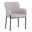 Moderner Armlehnstuhl VÄTÖ mit beigem Stoffbezug und schwarzem Stahlgestell – stilvoll, bequem und vielseitig kombinierbar. Lesen Sie mehr.
