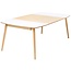 Hergestellt aus Birkensperrholz, seidiges HPL (Hochdrucklaminat) auf Sperrholz – weiß (RAL 9003) oder hellgrau (RAL 7042), Birkenbeine ölgewachst.