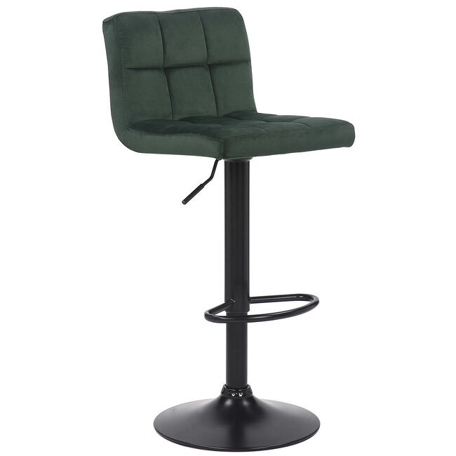 Dieser Thekenhocker beeindruckt mit seinem modernen Look und dem Gemütlichkeitsfaktor. Die Sitzfläche mit angesagtem Samtbezug ist angenehm gepolstert und bietet mit der Rückenlehne besten Sitzkomfort auch über mehrere Stunden hinweg. Zudem ist dieser Küchenhocker höhenverstellbar und passt sich somit ideal an jede Körpergröße an. Der Trompetenfuß aus matt schwarzem Metall ist mit einer stilvollen Fußstütze versehen, die das Sitzen noch bequemer gestaltet. Ein absolutes Highlight für gemütliche Stunden an der Bar.