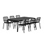 Exklusive Garten-Essgruppe bestehend aus dem Borneo Aluminium-Tisch (200x100 cm) und 6 stapelbaren Peking Sesseln. Modernes skandinavisches Design in Anthrazit/Schwarz. Leicht, wetterfest und langlebig. Ideal für 6 Personen. Lesen Sie mehr.