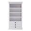 In diesem Regal können alle Ihre Lieblingsbücher oder Sammlerstücke ausgestellt werden. Das seidenmatt weiß lackierte Finish unterstreicht die detaillierte Formgebung. Drei Schubladen an der Basis mit antiken Messinggriffen bieten zusätzlichen Stauraum für Bettwäsche oder persönliche Gegenstände.