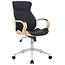 Dieser Bürostuhl ist mit einer sehr hochwertigen Polsterung mit Kunstlederbezug ausgestattet. Kunstlederbezüge haben den Vorteil, dass sie elastisch sind und sich bei Entlastung wieder glatt ziehen. Dies sieht nicht nur schöner aus, sondern erhöht zusätzlich die Lebensdauer des Sitzbezuges. Der Holzrahmen macht diesen Drehstuhl zum absoluten Hingucker und verleiht ihm ein edles Design. Dank der stufenlos verstellbaren Sitzhöhe ist ergonomisches Sitzen garantiert und der eingebaute Wippmechanismus sorgt für mehr Bewegungsfreiheit. Das Gestell ist aus Metall in Chromoptik und sehr stabil. Der Schreibtischstuhl steht standsicher auf fünf Leichtlaufrollen. Egal ob Hart- oder Teppichböden - man kann immer leicht und locker über den Boden rollen.