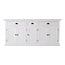 Klassisches weißes Finish - Eine vollflächige, fünfschichtige, seidenmatt lackierte Oberfläche, die mit einem dauerhaften Decklack versiegelt wird. Die Textur des Classic White definiert sanft das darunter liegende Mahagoniholz und kann zu einem ganz leicht gebrauchten Effekt führen. Die leuchtend weiße Farbe passt neben den verschiedenen Ausführungen der eigenen Kollektion, gut zu allen Möbeln in Schwarz oder Braun aus den Kollektionen Kontrast sowie und Akzent.