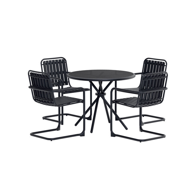Erschaffen Sie sich mit der Essgruppe Chios eine moderne Wohlfühloase auf Ihrem Balkon oder Ihrer Terrasse. Dieses 5-teilige Set besticht durch sein einladendes Design und seine klaren Linien. Das zeitlose Schwarz verleiht Ihrem Außenbereich eine anspruchsvolle Note und lässt sich hervorragend mit verschiedenen Dekorationsstilen und anderen Gartenmöbeln kombinieren.