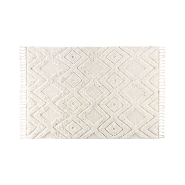 ↔ 300x400 cm – Eleganter Wollteppich Dahlia in Cremeweiß mit dichtem Flor, modernem Struktur-Muster und handgeflochtenen Fransen aus 100% Wolle.