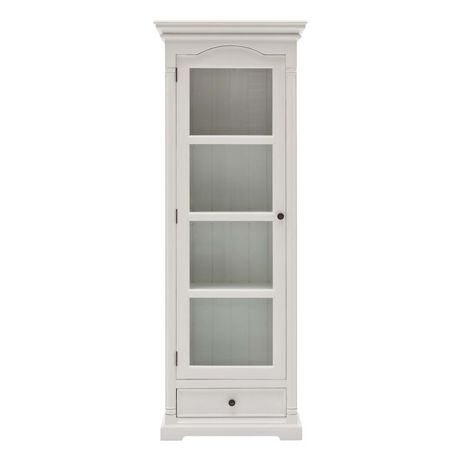 Setzen Sie Ihre liebsten Schätze glanzvoll in Szene. Die Glasvitrine Halifax besticht durch ihre schlanke Silhouette und die hochwertige Verarbeitung im französischen Landhausstil. Ob kostbares Geschirr in der Küche oder wertvolle Sammlerstücke und Fotorahmen im Wohnzimmer – hinter der großzügigen Glastür bleiben Ihre Objekte gut sichtbar und dennoch perfekt vor Staub geschützt.