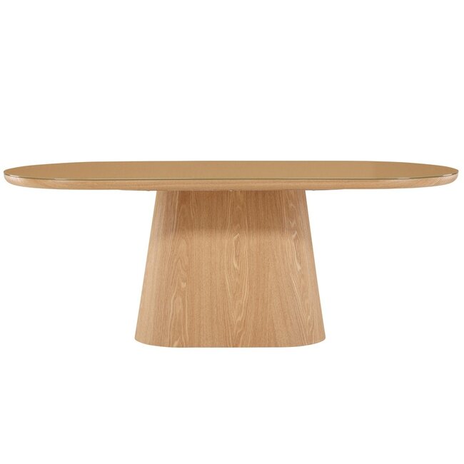 ↔ 200 cm ↕ 90 cm – Der ovale Esstisch Castor vereint moderne Eleganz mit transparenter Glasplatte und naturfarbenen MDF-Beinen. Luftig, lichtreflektierend und robust – ideal als Statement-Piece für 4 Personen. Lesen Sie mehr.