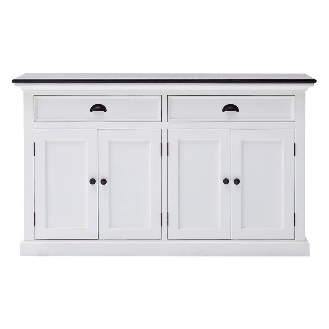 ↔ 145 cm – Repräsentatives Sideboard Halifax Contrast aus massivem Mahagoni mit 4 Türen und 2 Schubladen im markanten schwarz-weißem Finish.