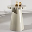 Die Tischplatte besticht durch eine gewellte Kante, die dem Beistelltisch eine verspielte, einzigartige Ausstrahlung verleiht. Das zylinderförmige Bein sorgt für eine stabile, moderne Basis, während die warme beigefarbene Oberfläche leicht kombinierbar ist und jedem Raum eine einladende Atmosphäre verleiht.
