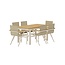 Stilvolle Essgruppe Panama & Mexico aus beigem Aluminium und edlem Teakholz. Set bestehend aus dem ausziehbaren Esstisch (160–240 cm) und 6 stapelbaren Mexico-Stühlen. Wetterfest, zeitlos und flexibel für bis zu 10 Personen. Lesen Sie mehr.