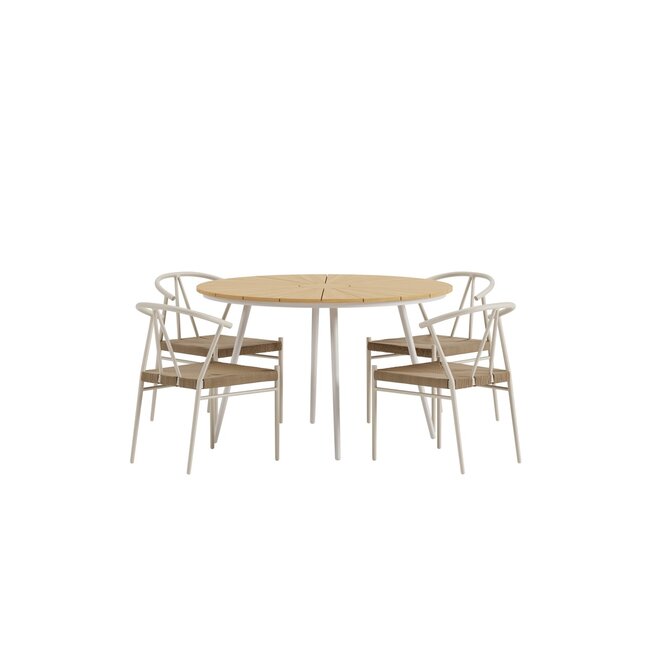 Erschaffen Sie einen einladenden und stilvollen Essbereich unter freiem Himmel mit dieser raffinierten Kombination aus dem San Vito Rundtisch und den charmanten Alfons Dining-Sesseln. Dieses Set vereint skandinavische Schlichtheit mit natürlicher Wärme und verwandelt Ihre Terrasse oder Ihren Garten in eine echte Wohlfühloase.