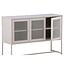 Der Schrank Malla aus beige pulverbeschichtetem Stahl vereint industrielles Design mit Funktionalität. Mit Gittertüren, zwei Regalböden und schlanken Beinen ist er ideal für Wohnzimmer, Essbereich oder Büro. Lesen Sie mehr.