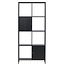 Modernes Hochregal Porto Seguro (180 cm) aus schwarzem Stahl. Einzigartige Kombination aus offenen Regalebenen und zwei Schrankfächern mit eleganten Messinggriffen. Minimalistischer skandinavischer Stil für Wohnzimmer, Büro oder Flur. Lesen Sie mehr.