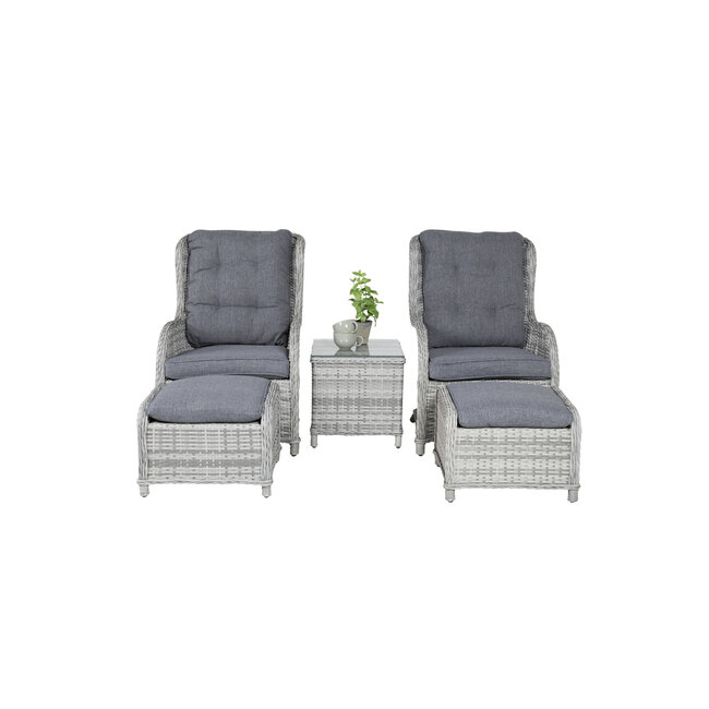 Hochwertiges Polyrattan-Geflecht: Gefertigt aus lichtgrauem Kunstrattan (Konstrite) auf einem stabilen Aluminiumrahmen. Das Material ist speziell für wechselhafte klimatische Bedingungen entwickelt und überzeugt durch seine Langlebigkeit.